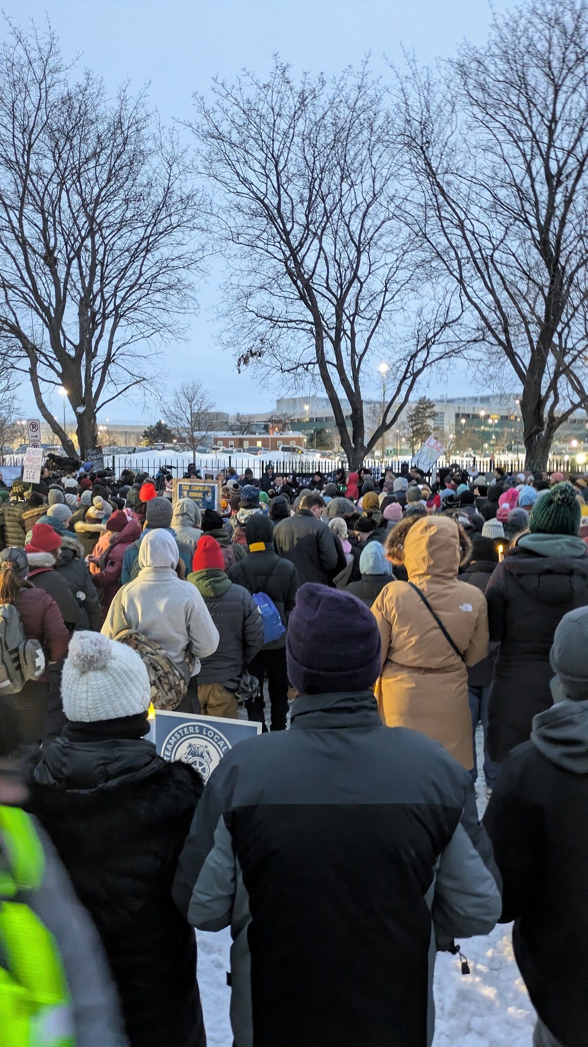 AFGE Local 3669- Federal Government- On Sunday, AFGE Local 3669, the union for nurses at the Minneapolis VA, held a vigil for their fallen brother Alex Pretti. It was a really emotional event, with lots of families and kids around. I’ve heard that the whole hospital has been in mourning, I can only imagine what the working environment is like. As many speakers noted, Trump has ripped away their CBA along with those of nearly every other federal worker. The AFGE also held vigils at VA hospitals all over the country. Of note, Teamsters Local 120 brought their food truck to the event, which I think was the first statement or action of any sort by that local on all of this.